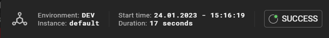 Indicates the environment, instance, duration of the deployment and the state of the environment with which the deployment finished: