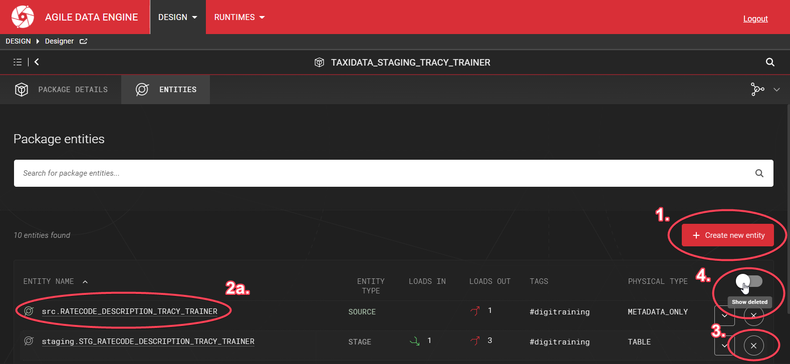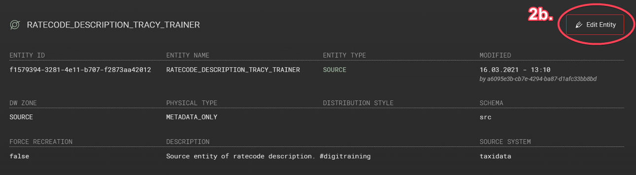 Entity is a core metadata object in Agile Data Engine. An entity refers to data warehouse tables, views, materialized views, or informational metadata only objects (sources).