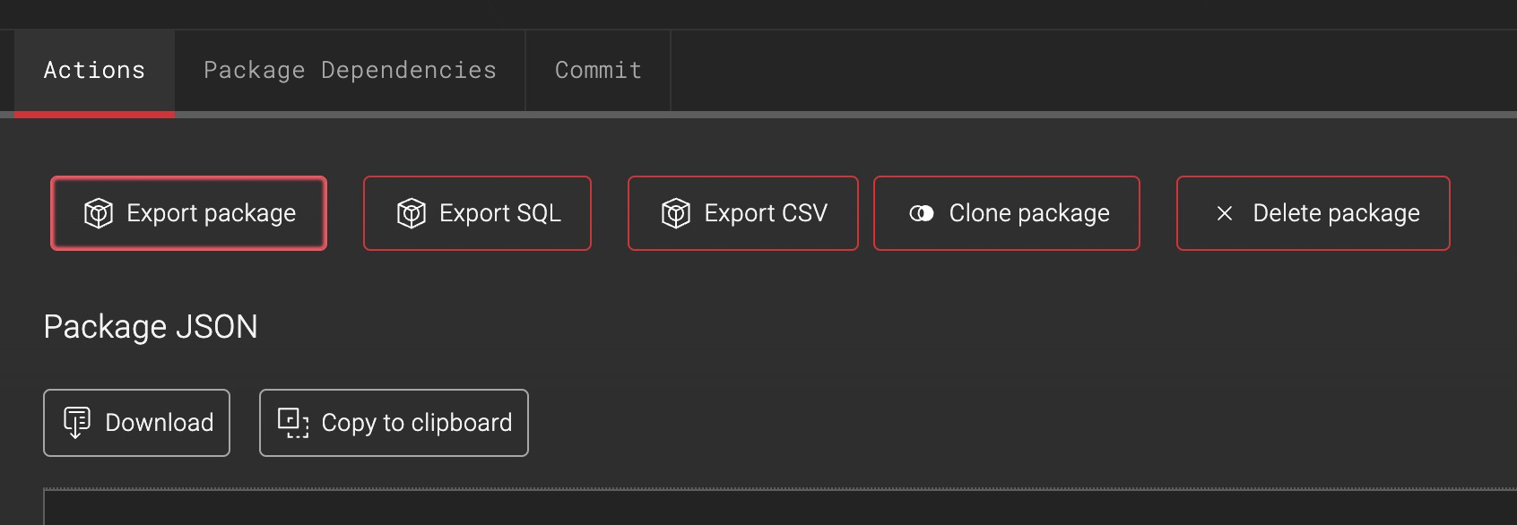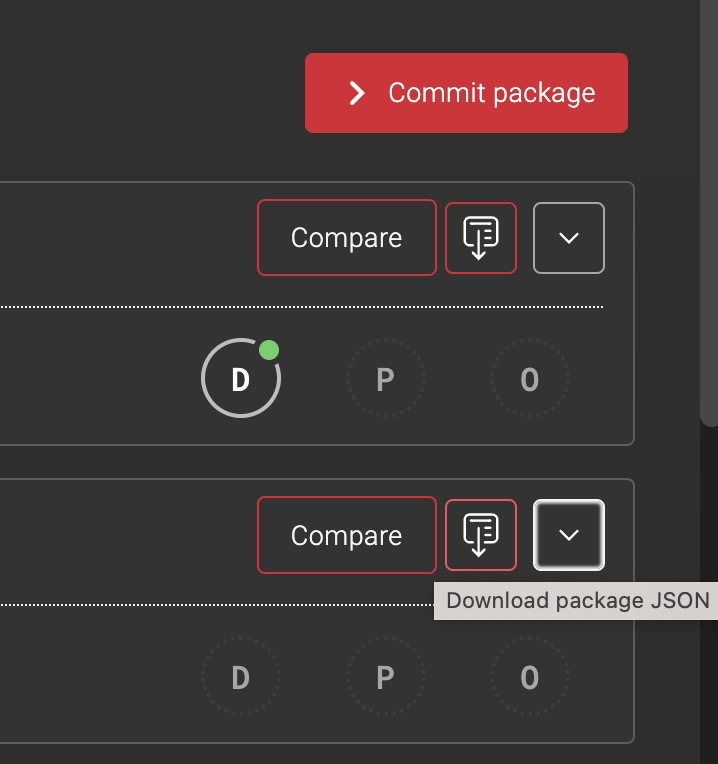 Package definition can be also exported from the Commit view under ‘Package details' using 'Download package JSON’. This gives an easy option to export historical version of a package:
