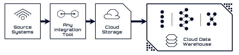 In this scenario, data has already been ingested into the data warehouse, and Agile Data Engine is used for downstream data modeling and transformation. For example, you might be using an external tool to extract data from source systems that also automatically manages the creation and evolution of staging tables in the data warehouse.